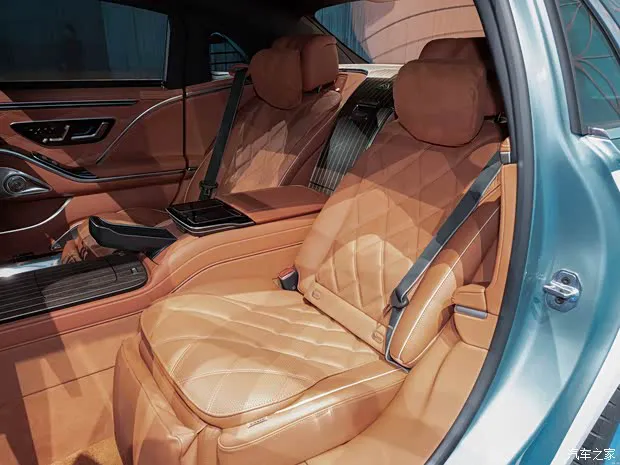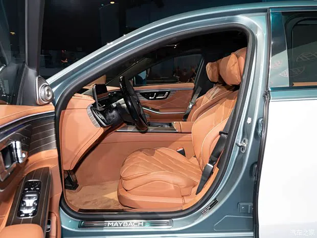 内饰方面,迈巴赫标志性的环抱式座舱设计全面焕新,中控台以更大面积的饰板铺陈,并提供丰富的材质选择,如新增的炭灰色开孔型橡木饰件,以及琥珀棕色开孔型鱼骨纹木饰件。新增“榉木棕”色内饰。大面积Nappa真皮包覆内饰,从座椅、方向盘、延伸至仪表板与车窗框架。首次提供非动物皮革内饰。