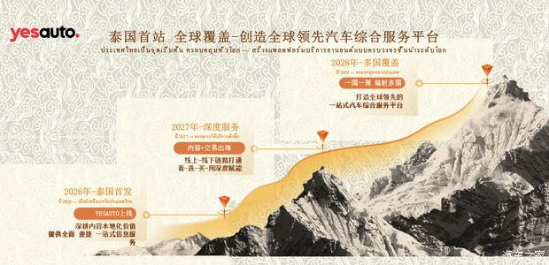 今天,我们正式发布内容出海战略的核心载体——YES AUTO。我们并非单纯的媒体,也不止于汽车资讯服务,而是为用户提供全场景体验的一站式汽车综合服务平台。它的核心是两个支柱:一是内容深植泰国,用泰语、用泰国人喜欢的方式,做专业、有趣、多元的内容;二是数据智库服务泰国,让每一款在售的车都有据可查。根基是我们跟当地经销商、金融机构、物流伙伴的深度合作,再加上AI提效、ESG扎根。我们的愿景不是把中国的平台搬过来,而是在泰国,长出一个属于这里的平台。我们的三年战略也很清晰:2026扎根年,Yes Auto在泰国上线,搭建本地团队,让每款车都能被查到、看懂;2027服务年,探索线上选车加线下交付,启动一站式选买服务试点;2028生长年,一国一策,在全球开花。一步一个脚印,做长久的事。