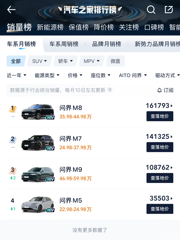 作为鸿蒙智行的销量担当,问界M7、M8、M9这三款产品已经纷纷在30万级、40万级和50万级市场站稳脚跟,甚至可以说是标杆级产品。这自然也会使得对于问界M6的市场表现有着非常高的期待,毕竟在它之前的问界M5虽然是问界最入门的产品,但市场表现并没能达到3位“大哥”的水准。因此问界M6能否成为25万级爆款,也要看看它面临的对手都有哪些。
