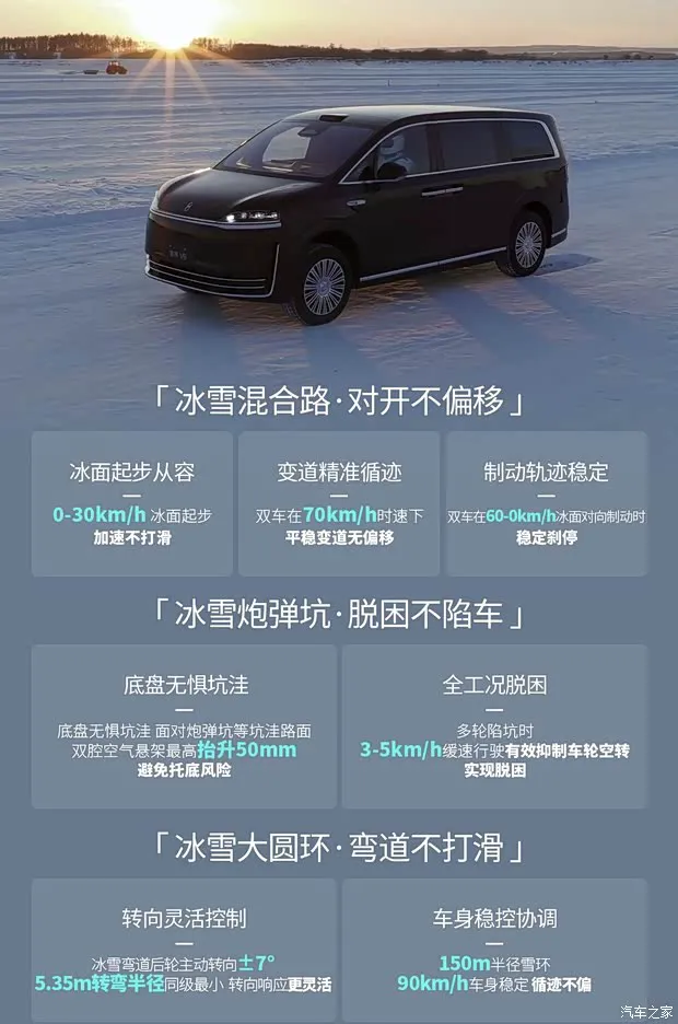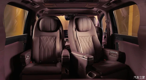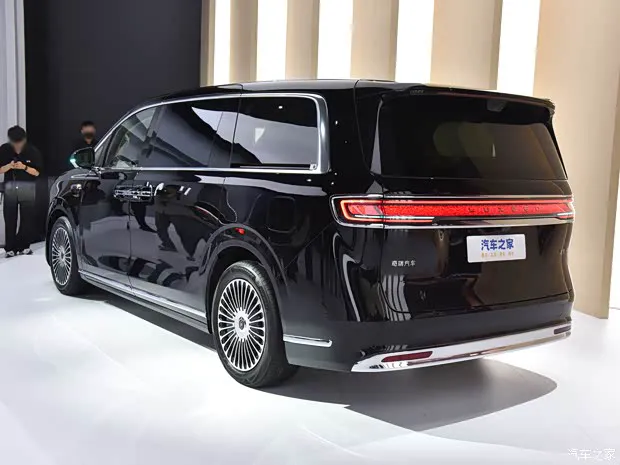 车尾方面,整体设计延续前脸的简约风格,贯穿式尾灯与前脸日行灯呼应,点亮后辨识度极高,灯组内部造型精致。车顶上方配备大尺寸扰流板,优化风阻的同时增添一丝运动感,下方包围简洁厚重,辅以镀铬饰条与前脸形成呼应,整体造型四平八稳,符合高端MPV的定位。车身提供辉光紫、深海蓝、雪域白、鎏金黑四种配色,可满足不同用户的审美需求。
