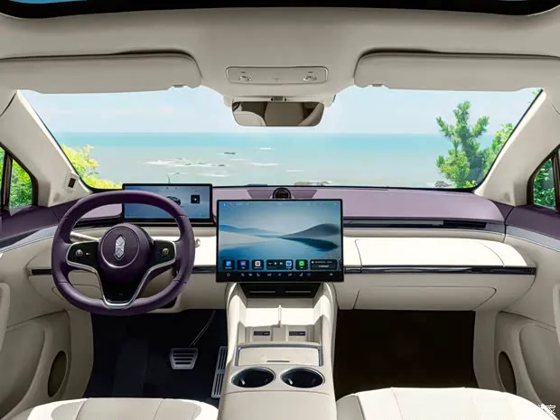 内饰包含12.3英寸主驾前眺领航屏、橄榄型方向盘和16.1英寸3K中控屏。配备鸿蒙座舱,语音助手小艺实现可见即可说,支持HiCar互联,全车升级搭载21扬声器HUAWEI SOUND音响,中控台下方提供50瓦无线快充,通过HUAWEI MagLink可实现华为平板上车,多屏同享影音,新车还会配备21扬声器HUAWEI SOUND音响系统。