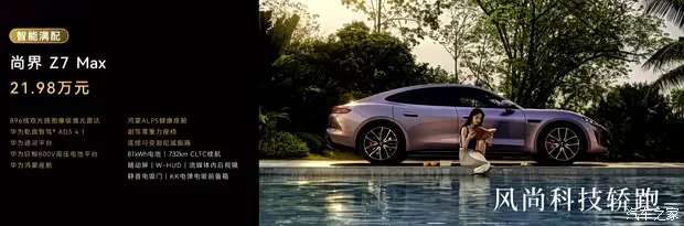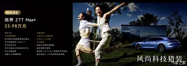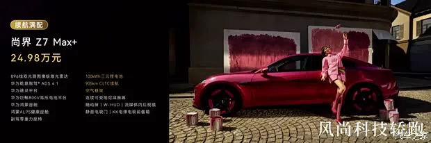 动力方面,尚界Z7将提供单电机后驱和双电机四驱版本,单电机版最大功率359马力(264千瓦),双电机版最大功率590马力(434千瓦),新车搭载81度和100度的宁德时代三元锂电池,华为巨鲸800V高压电池平台,CLTC最大续航905km,0-100km/h加速3.44秒。车身高强钢与铝合金占比高达91%,全车14处2000MPa潜艇级热成型钢。此外,新车还将全系标配华为途灵平台,支持智能车身协同控制、DATS动态自适应扭矩控制等功能。编辑点评