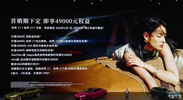 内饰方面,尚界Z7/Z7T带来沁夜红、速影黄、凝夜紫、闪金黑、缥云杏5款配色,更年轻的时尚拼色设计搭配一体式运动座椅,为年轻用户提供更具仪式感的座舱氛围。新车拥有仪表盘、大尺寸悬浮式中控屏以及副驾屏,并首发随动四维屏,支持前后伸缩和左右旋转,可自动转向、智能迎宾,呼叫小艺即可转向应答。辅助驾驶方面,车辆将配新一代896线双光路图像级激光雷达,其分辨率提升4倍,远距离可识别14cm高的微小目标。同时,新车将全系标配华为乾崑智驾ADS 4.1,带来更好的出行体验。
