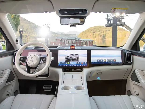 内饰方面,问界M8采用三联屏的布局,包括液晶仪表、中控屏和副驾屏,车机配备HarmonyOS 4系统,并提供HUAWEI SOUND音响,新车还配备HUD抬头显示系统。同时,中控下方和中央扶手箱有较大的储物区,还提供了杯架、无线充电面板等。座椅方面,新车提供5座和6座可选。