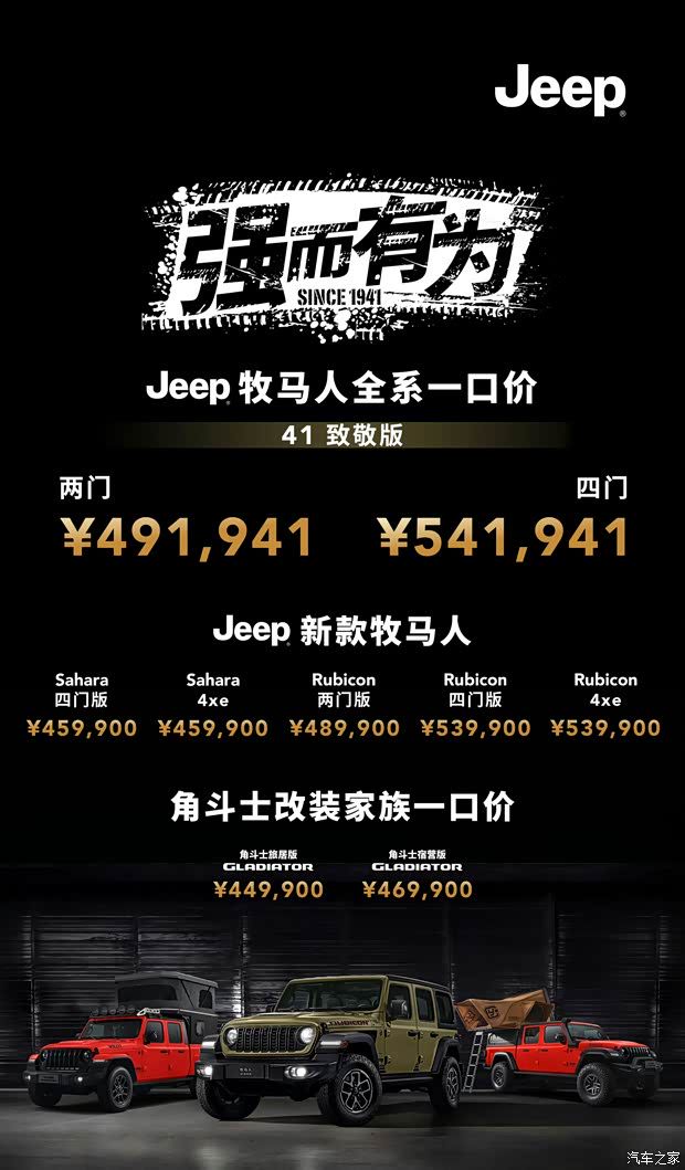 威利斯吉普车Jeep牧马人“自古以来”就是一款十分强悍的硬派越野车型,而本次上市的41致敬版以经典的威利斯吉普车作为设计灵感,进一步彰显了其几十年如一日对于与越野的不懈追求与技术传承。不过最近几年中国品牌的越野车型也在逐渐崛起,牧马人的市场也开始被坦克400、方程豹豹5等车型所觊觎,我们也期待Jeep作为一家老牌越野车企业未来能够带来更多硬核的越野新车型,与中国品牌一较高下。