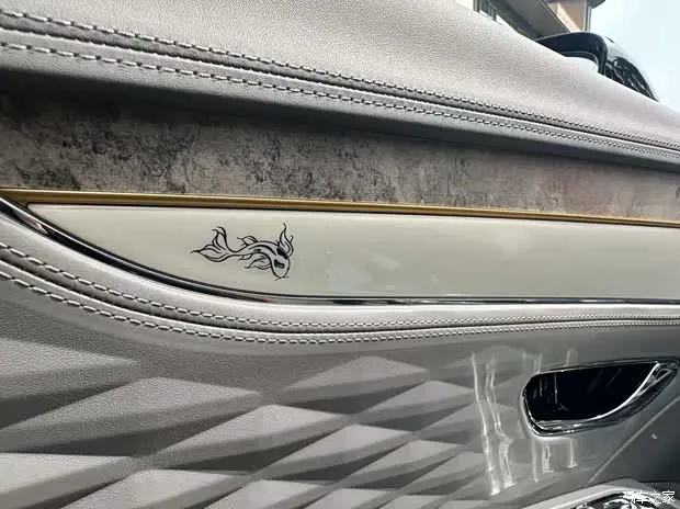 内饰来看,新车采用浅米色座椅,拥有蓝色包边,座椅靠背拥有金色的锦鲤刺绣,副驾驶前方同样拥有波浪线条纹理。此外,门槛处也配备了锦鲤专属铭牌,其上有锦鲤标志,并且表明了这是一辆由MULLINER定制部门打造的车型,限量8台。