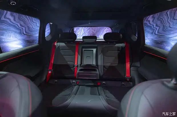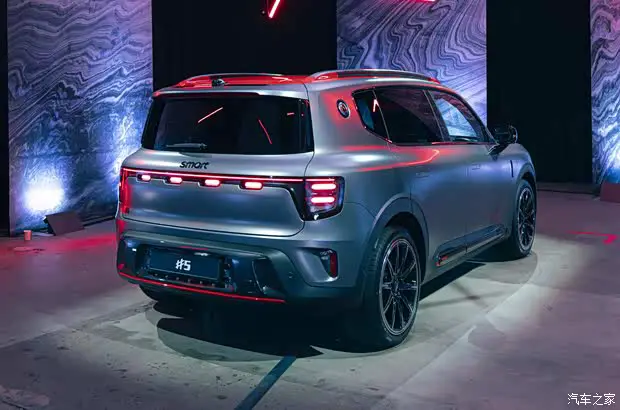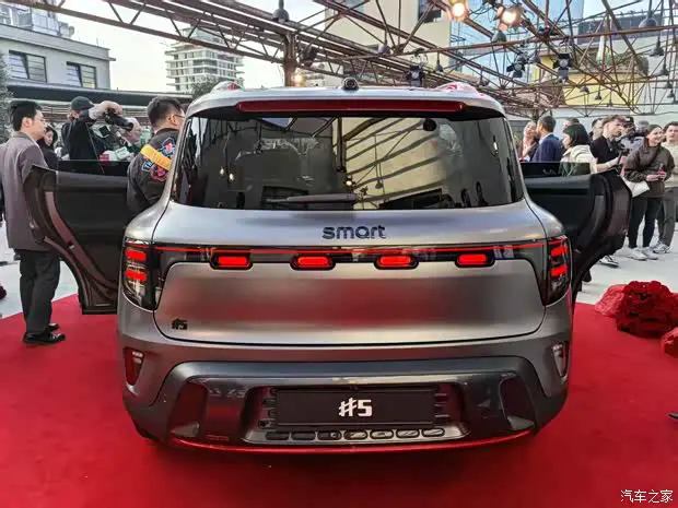 车尾部分,smart精灵#5 BRABUS超能版最大的改变,是配备了车顶扰流板,同时扰流板上设有内凹式的红色装饰,这些都是对运动性能感的强化。尾灯造型和普通版保持一致,与前灯组形成呼应,下包围同样造型立体,并在底部加入红色线条装饰以及BRABUS的LOGO标识。同时,车辆尾部的smart字母以和“#5”的标识也全部进行了黑化处理。车内增加BRABUS标识,强化身份认同