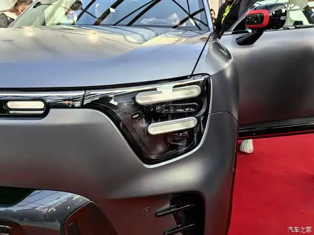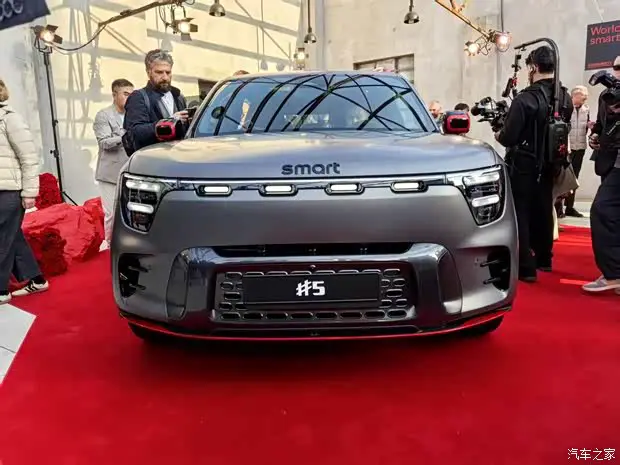 smart精灵#5从概念车开始就一直强调“硬派”风格,整体造型方方正正,但在细节上又大量使用圆润的胶囊元素来提升精致感,让它看起来有种“战斗萝莉”的独特风格。这次的smart精灵#5 BRABUS超能版在外观方面基本延续普通版的设计,车头配有间断式的“胶囊”LED光源,下包围造型同样十分立体,不过与普通版车型相比,前包围的两侧通风开口位置,加入了两条导流片,并在前包围的底部加入了一条红色线条来强化运动感。此外,smart的字母Logo也进行了黑化处理,并且可能会提供红色Logo的选择。