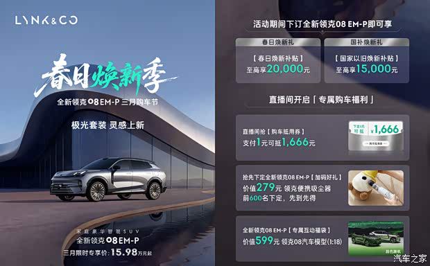 3月13日,我们从领克品牌官方了解到,领克07 EM-P推出126长续航Ultra碳纤维尾翼版,售价为17.58万;与此同时,领克08 EM-P推出极光套装,3月限时专享价为15.98万起,在活动期间下订可享至高2万元换新补贴、至高1.5万元换新补贴等。