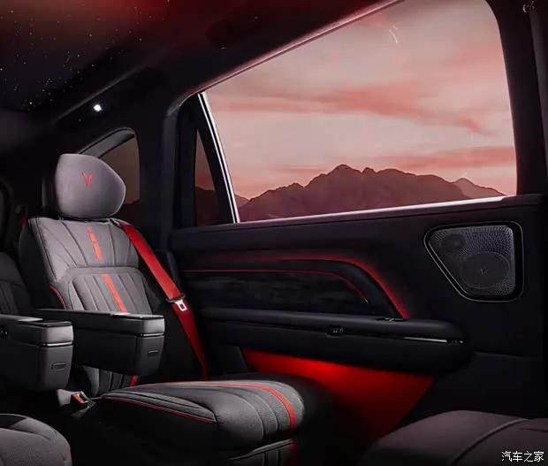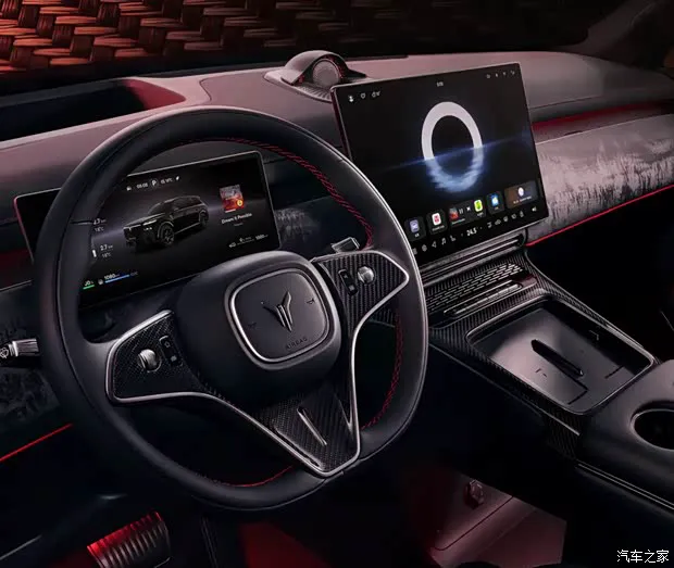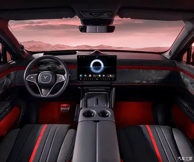 根据官图来看,新车将搭载10.25英寸全液晶仪表盘与HUD抬头显示,同时使用三辐式多功能平底方向盘;中控台中间配备了16.1英寸的悬浮式多媒体触控屏,通道区域配备双无线充电面板以及双杯架。此外,黑武士将会配备独有的丹墨内饰配色,黑色与红色的撞色设计进一步展现个性化属性。