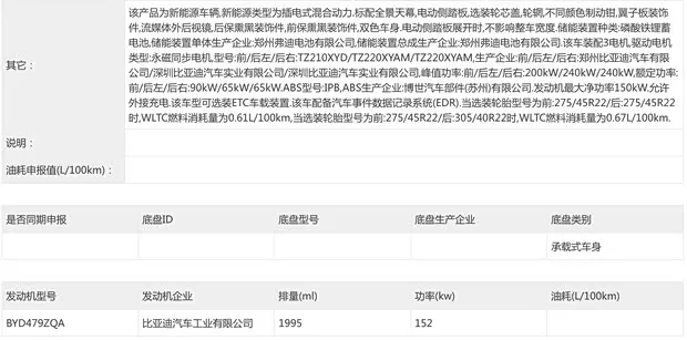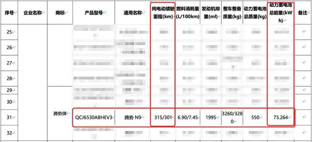 动力方面,新款腾势N9依旧采用2.0T插混系统,发动机最大功率152千瓦,同时配备三电机系统,前电机最大功率200千瓦,左后电机与右后电机最大功率均为240千瓦。电池组方面,新车将搭载第二代刀片电池,容量为75.264kWh,工信部申报信息的WLTC纯电续航里程拥有315公里与301公里两种,预计是不同轮圈配置造成的差异,官方公布的CLTC纯电续航里程可大420公里;WLTC最低荷电油耗由7.29L/100km降低至6.9L/100km。