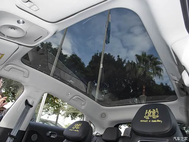 来到车内,新车将联名标识点缀于头枕、中控屏及门槛等细节之处,天窗磨砂图案与脚垫设计亦融入艺术家的经典作品,值得一提的是,它还采用彩色安全带提升车内氛围感。