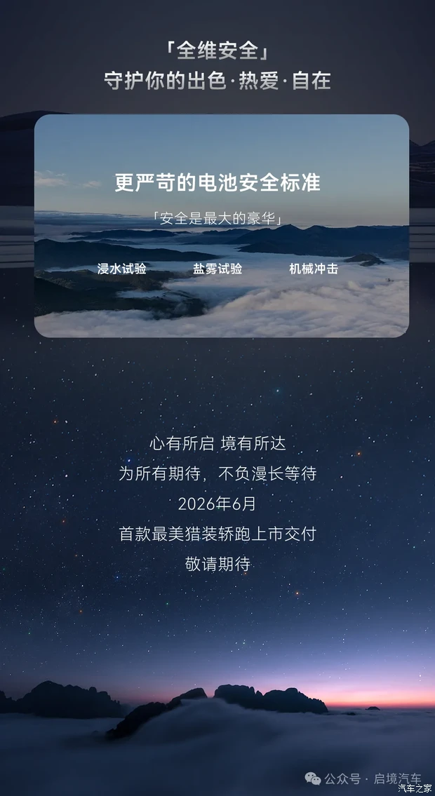 作为回顾,启境品牌是华为和广汽合作共建,华为乾崑聚焦释放全栈智能技术价值,广汽以深厚造车积淀承接并放大科技优势。据悉,启境将在2026年带来两款新车,首款车型为猎装轿跑车。关于新车的更多信息,我们也将持续关注报道。