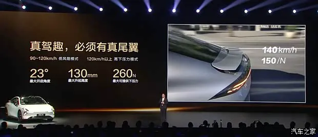 车辆尾部配备了随速电动后扰流板,最大开启角度23°、升起高度130mm,兼具视觉与性能。时速超过90km/h,自动升起;超过120km/h,进入高下压力模式,最大提供260N下压力(相当于26kg配重)。同时,车尾后扰流板可手动自定义无级(10挡)调整尾翼开合角度大小,后续将通过OTA实现。此外,新车还将464L全系标配电动后备厢。○ 15.6英寸2.5K向日葵中控屏,配备3纳米车规级座舱芯片