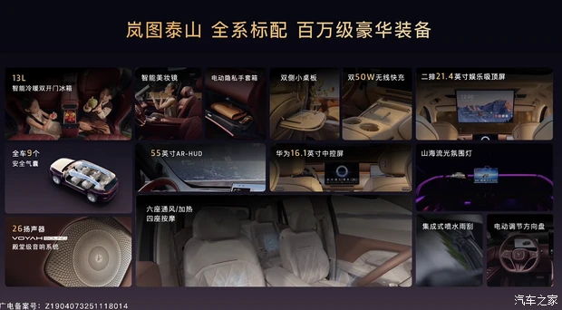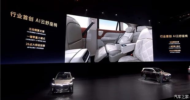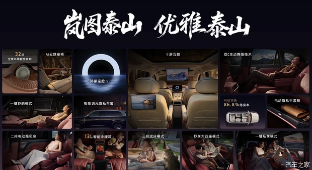 来到车内,岚图泰山以“山海万象”为设计理念,前排配备大尺寸悬浮式中控屏,内置最新版鸿蒙座舱语音大模型,不仅能听懂字面意思,还能理解弦外之音。另外新车还会配备AI云舒座椅和32扬声器天籁全景声场等,音响系统最大功放功率达2300W,采用9.1.5.8声道。