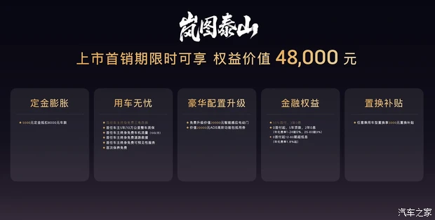 岚图泰山采用了以沉稳大气为主的家族式设计语言,直瀑式的多条幅中网加上镀铬装饰条显得气场十足。细节方面,前格栅发光点亮LOGO与日行灯一起贯穿整个车头,新车还采用了分体式前大灯组设计。而在配置方面全车配备有四个激光雷达,其中包括华为超500线程激光雷达,搭载华为最新的ADS Ultra四激光雷达智能辅助驾驶方案,具有城区NCA、全场景自动泊车等能力。