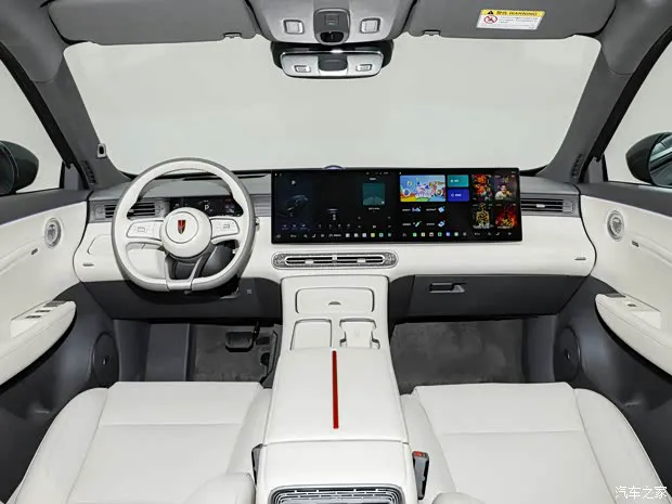 来看内饰部分,新车采用了内嵌式的小尺寸矩形全液晶仪表盘,并搭配双色三辐式多功能方向盘,中控台上配备了多媒体屏与副驾屏的双联屏设计,屏幕尺寸和分辨率达到了15.6英寸2.5K,车联系统内置高通骁龙8295P芯片,能提供丰富的联网功能以及视听交互体验。