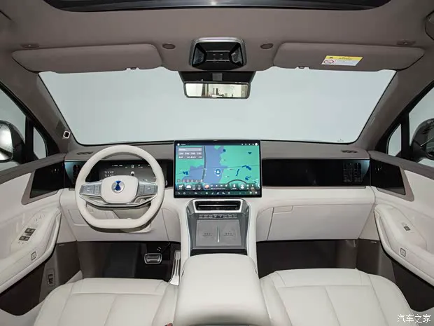 咱们先来聊聊这款车的内饰表现。整体来看,它基本上延续了与腾势 N9 相似的家族式设计风格,这种设计语言的优势在于保持了品牌辨识度,同时也在细节质感上做到了传承与创新。不过,真正让人眼前一亮的,还是它那堪称豪华的屏幕配置,可以说在同级别车型中极具竞争力。