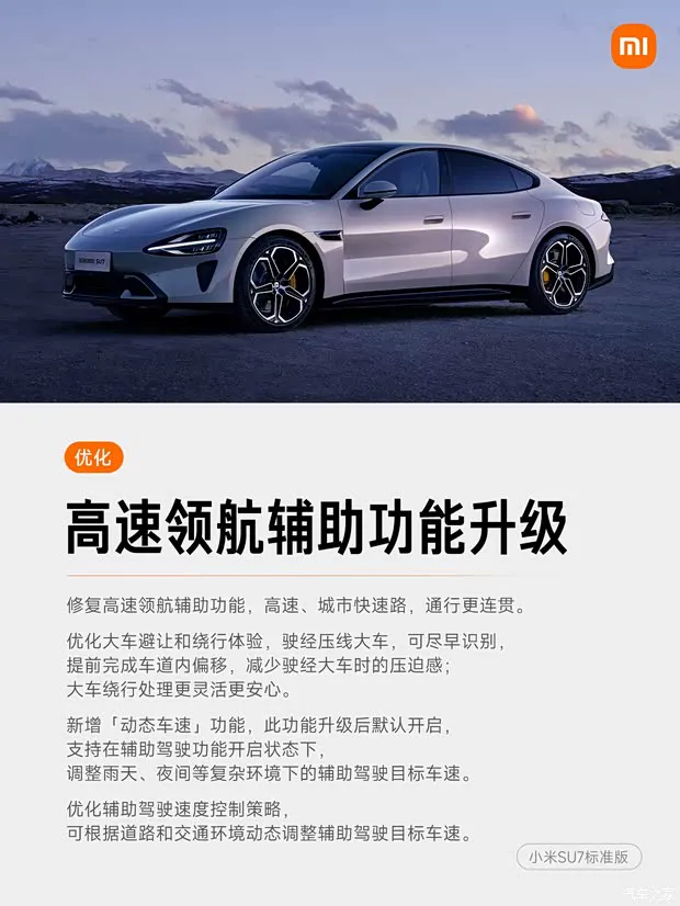 最近,小米 SU7 的辅助驾驶系统迎来了一次备受关注的升级。这次更新可不是简单的修补补,而是针对用户实际驾驶痛点的深度优化。特别是对于 SU7 标准版的车主来说,这次更新带来的体验提升尤为明显。咱们今天就来好好聊聊,这次升级到底在哪些地方下了功夫,又是如何提升大家的驾驶安全感的。