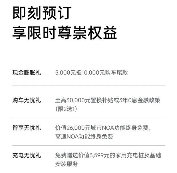 为了吸引首批用户,官方推出了颇具诚意的预订政策。即刻起至上市前 1 小时下订,消费者可享受多重礼遇。其中最直接的就是5000 元抵 10000 元的购车膨胀金,这在同级别车型中算是比较实在的优惠力度。